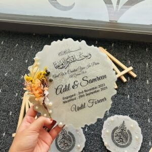 Celebrate your Nikah with our exquisite Meher Box, designed to add a personalized touch to your wedding ceremony. Each box is beautifully crafted and can be customized with the bride and groom’s names, heartfelt messages, or meaningful dates. The sturdy frame and luxurious finish ensure your Meher gift is safely kept and elegantly displayed. Ideal for storing jewelry, gifts, or cash, this Meher Box doubles as a keepsake that preserves the memory of your special day. Available in multiple styles and finishes, it makes a memorable addition to your wedding traditions and serves as a cherished memento for years to come.