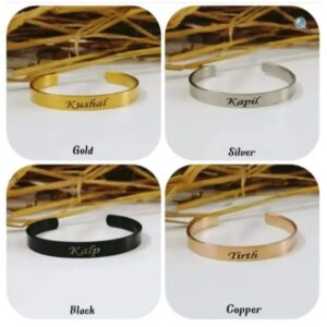 Elevate your style with our customized steel bangles, designed for both everyday wear and special occasions. Available in three stunning colors, each piece is crafted from high-quality stainless steel for lasting shine and durability. Personalize your bangle with names, dates, or heartfelt messages to create a meaningful gift for birthdays, anniversaries, weddings, or any celebration. These bangles can be worn alone or stacked for a fashionable look, and come beautifully packaged, making them perfect for gifting. Express your sentiment with a timeless accessory that reflects your unique story.