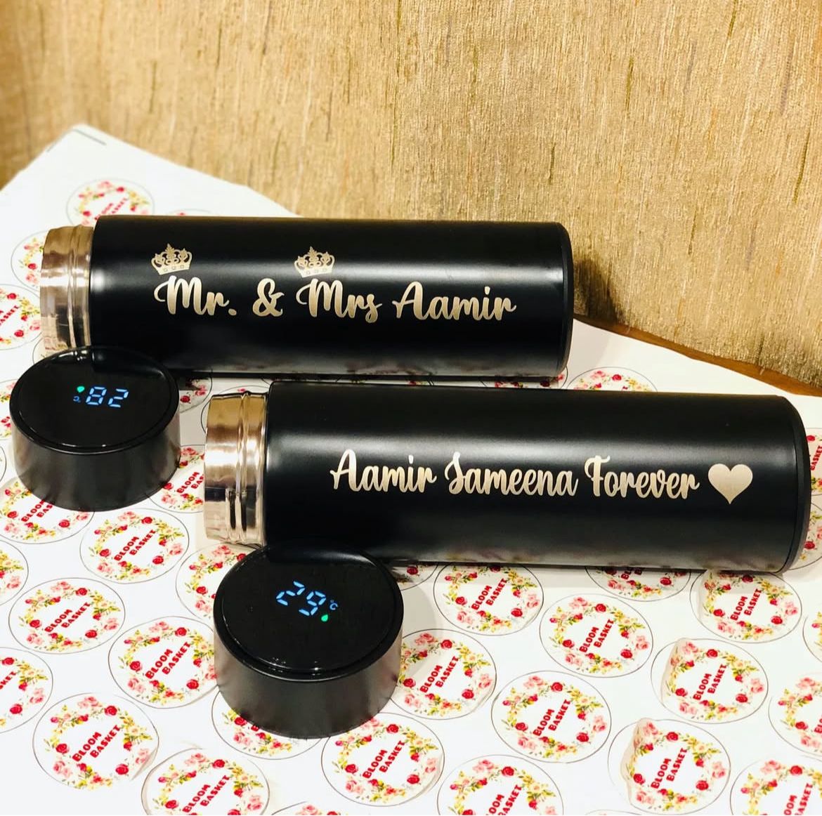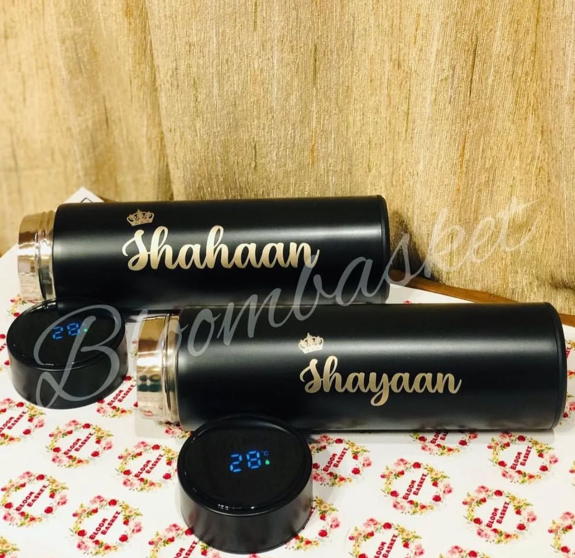 Stay hydrated in style with this personalized temperature bottle featuring a smart digital display and your custom name. Perfect for gifting or daily use, it keeps your drinks at the ideal temperature with a personal touch.