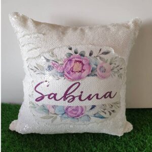 Personalized Magic Sequin Cushion – Floral Name Edition