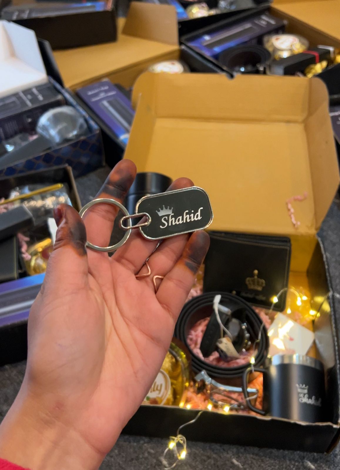 Crafted with a high-quality metal alloy frame, it features a stunning glossy black center that serves as the perfect canvas for your personalization. The text is precision-engraved in a rich gold tone, ensuring your name, special date, or message stands out with a luxurious finish.