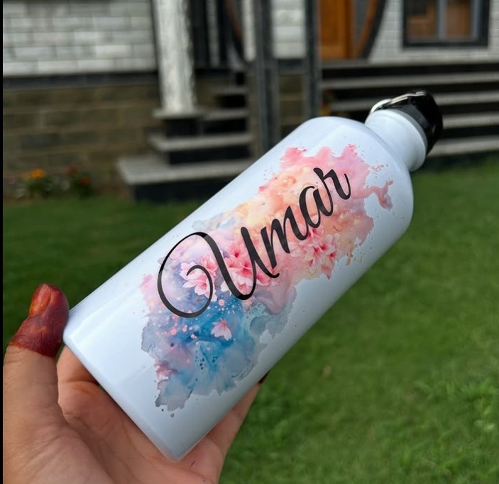 Upgrade your hydration game with our Customized Name Water Bottle, designed to stand out with a beautiful pastel splash motif and your name delicately printed in an elegant script. Crafted from high-quality, lightweight material, this bottle is easy to carry and perfect for school, work, gym, or travel. The leakproof cap ensures no spills, while the personalized touch makes it an ideal gift for friends, family, or colleagues. Make every sip unique—show off your individuality and stay motivated to drink more water wherever you go.