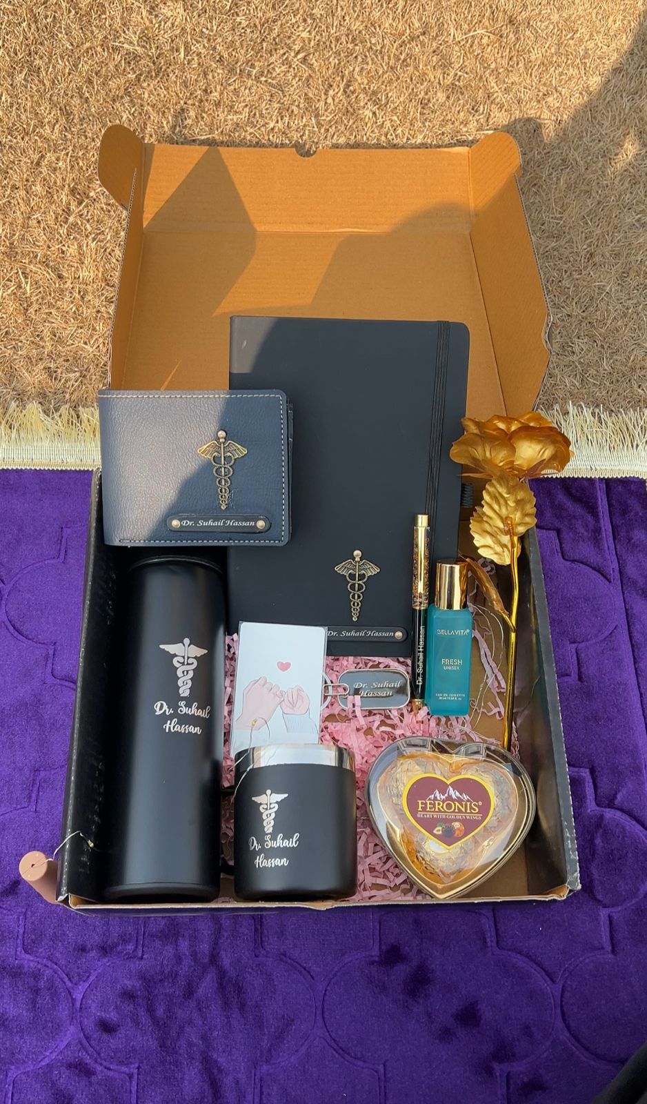Show your appreciation for the hard work and dedication of your favorite doctor with our “White Coat Elite” Gift Hamper. This carefully curated collection combines professional essentials with thoughtful luxuries, making it an unforgettable gift for medical students, practitioners, and healthcare heroes.